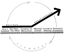 He shows us that the transition from a good business to a great business is accomplished by following the flywheel effect: